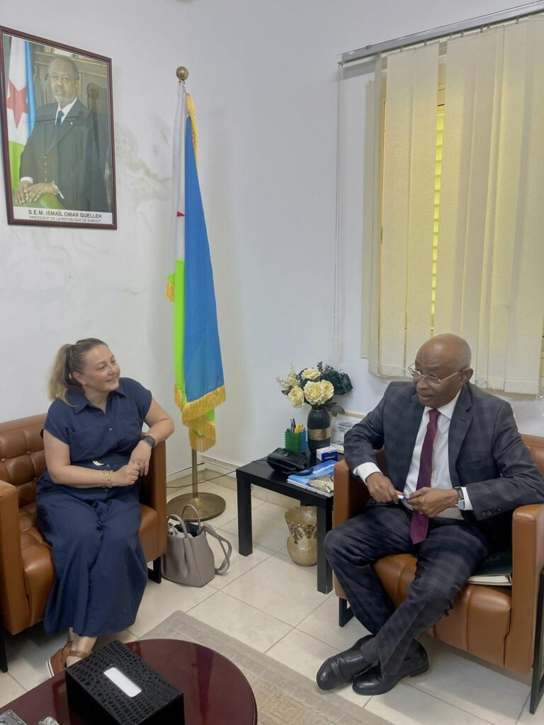Le Ministre Délégué Chargé de la Décentralisation, S.E KASSIM HAROUN ALI, a reçu dans son bureau ce dimanche 12 octobre 2025, la nouvelle représentante résidente du PNUD accréditée à Djibouti.Cette rencontre s’inscrit dans le cadre de la tournée de prise de contact de la nouvelle représentante du PNUD avec les ministères sectoriels.Les échanges entre le Ministre et la représentante de l’agence onusienne ont porté sur les domaines possibles de coopération entre les deux institutions.Il a également été question de renforcer la coopération déjà existante.Le Ministre a remercié le PNUD pour les appuis apportés au Ministère Délégué Chargé de la Décentralisation.Il a expliqué que ces appuis précieux ont permis l’équipement des bureaux de l’état civil dans les régions d’Ali-Sabieh et de Dikhil et l’équipement d’une salle de conférence au Ministère de la Décentralisation.A la question de la représentante concernant les potentialités et les spécificités des régions, le Ministre a répondu que chaque région avait développé des projets spécifiques et que ceux-ci sont consultables dans les documents de Plans de Développement Régional.Pour le Ministre, la priorité du gouvernement demeure la lutte contre le chômage et la promotion de l’emploi dans les régions.Le Ministre a fait part à la représentante du PNUD de l’existence de plusieurs projets de la décentralisation et il a, dans ce sens, sollicité un appui de l’organisation, pour que celle-ci contribue au développement des régions et à la lutte contre la pauvreté dans les régions.La représentante du PNUD a exprimé sa connaissance de la situation en matière de développement à Djibouti et a montré sa parfaite compréhension de la demande d’appui formulée par le Ministre.